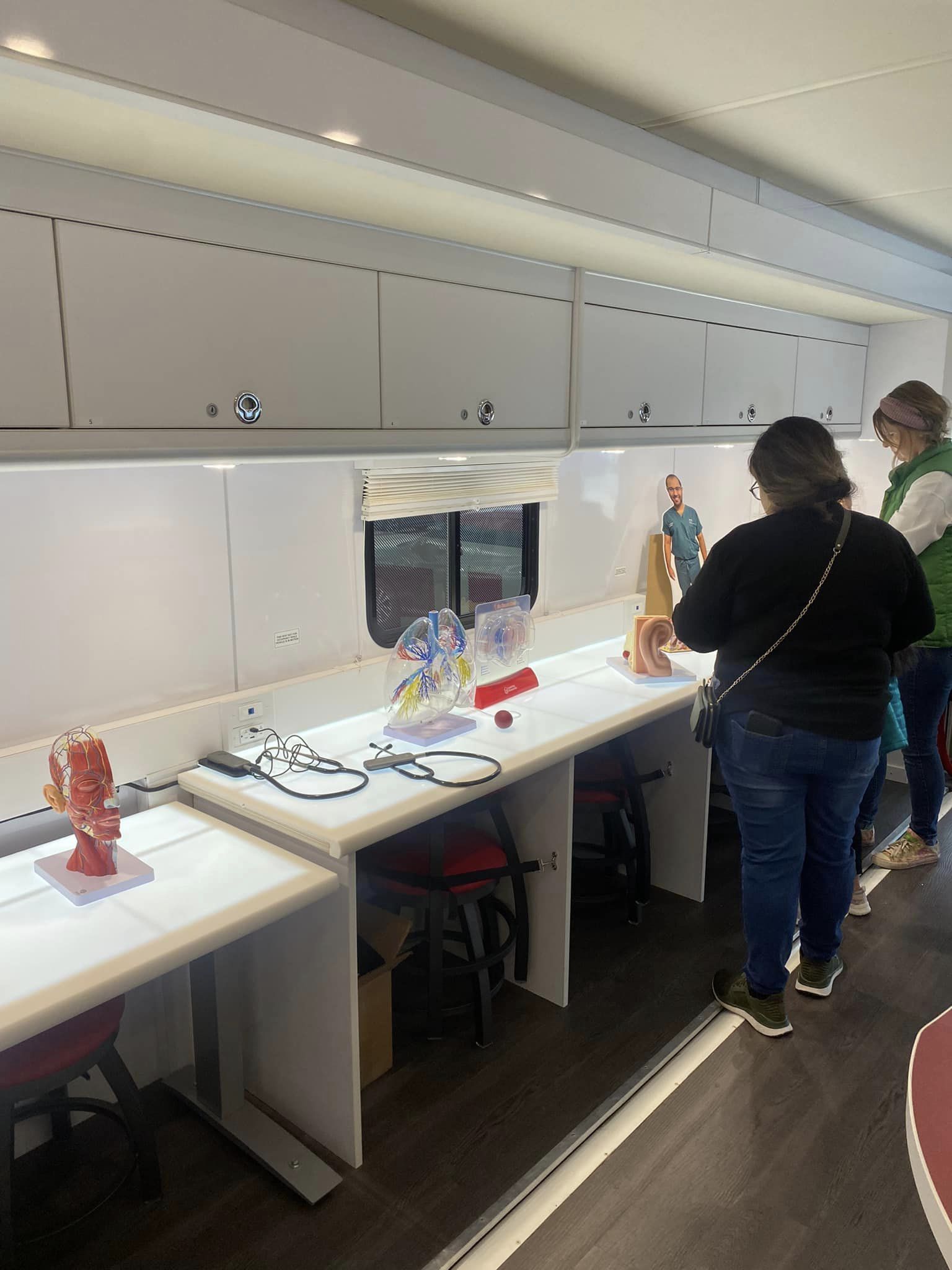 Unity Clinic Health Outreach team of OUHSC students and faculty preceptors offered health and handwriting screenings in collaboration with Education Outreach members providing STEM activities outside on the Explorer.